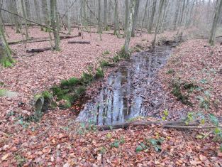 Wiederherstellung der natürlichen Abflussverhältnisse, um die eigendynamische gewässermorphologische Entwicklung der sommertrockenen Bäche und Gräben in der Naturwaldfläche zu unterstützen. Durch die Entfernung der Rohre werden außerdem der Geschiebedurchfluss und die Bedingungen für die Organismenwanderung verbessert. Durch die wegfallenden Unterhaltungsmaßnahmen an den Dolen werden menschliche Eingriffe in den Lebensraum der Naturwaldfläche minimiert.