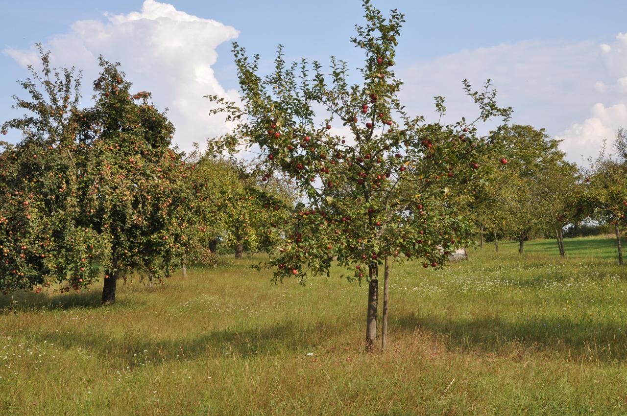 Entbuschung von alten Streuobstbeständen sowie Nachzucht und Nachpflanzung alter Obstbaumarten zum Erhalt der Streuobstwiesen auf der Rodungsinsel Büchelberg.